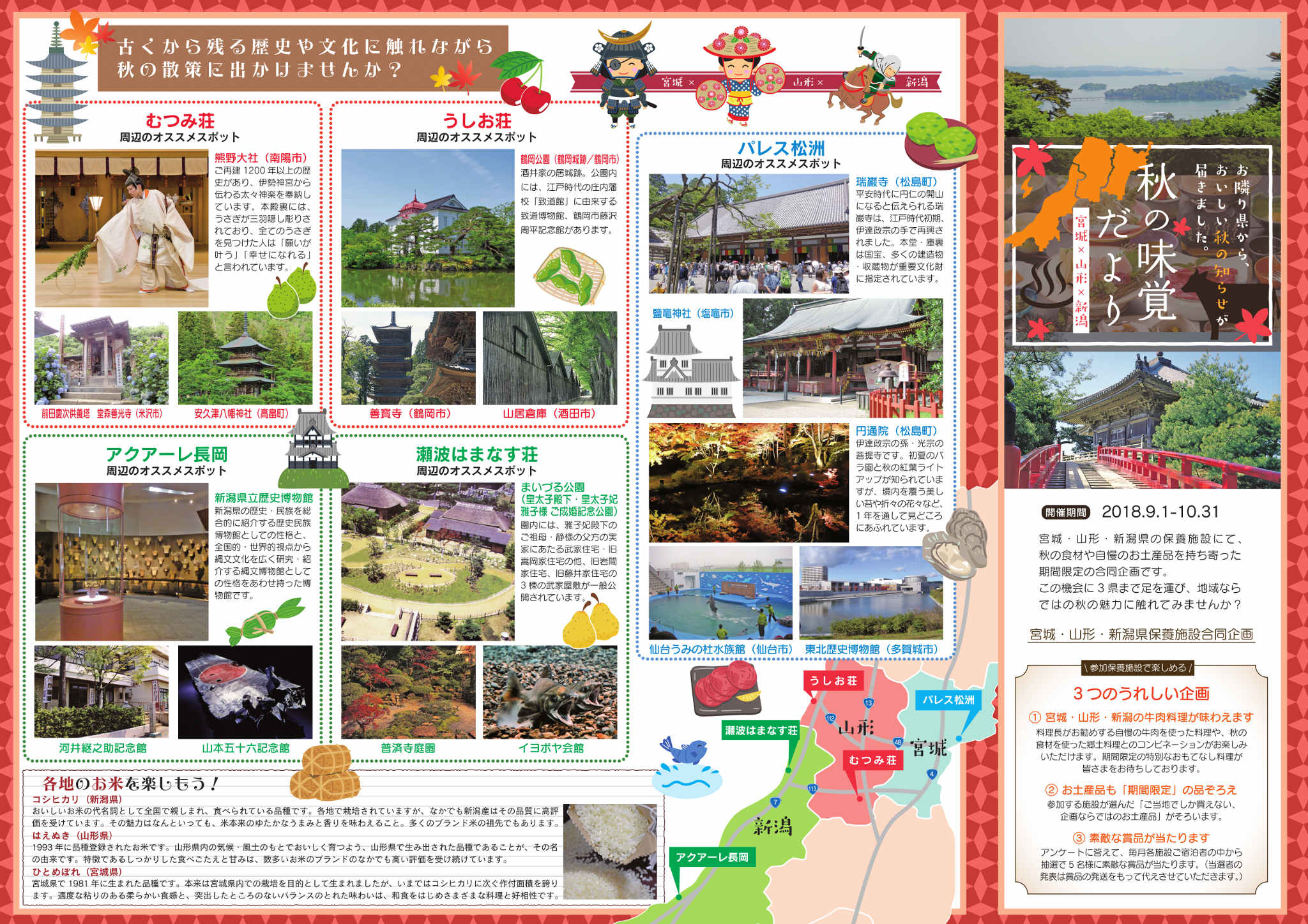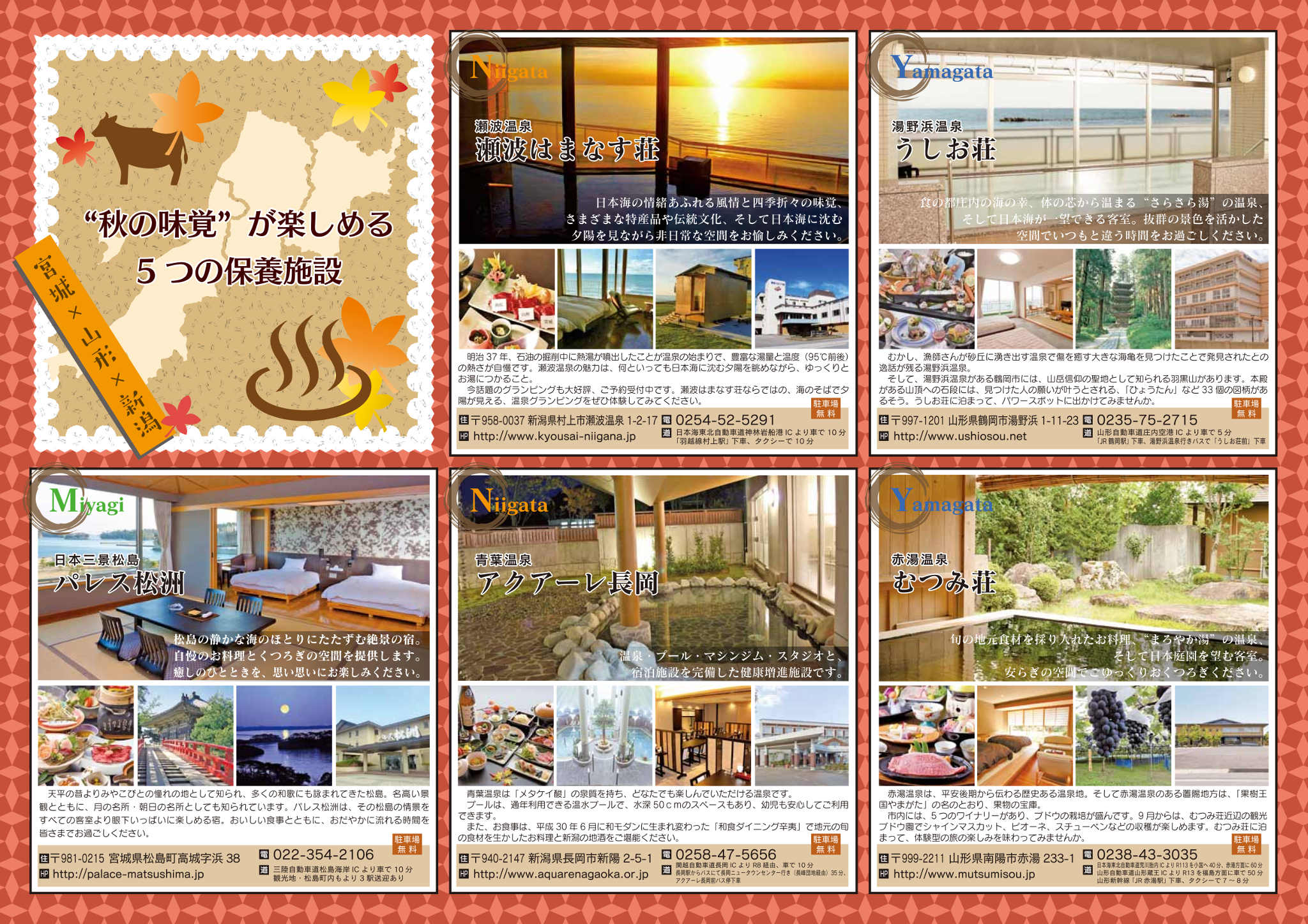 例年ご好評をいただいております、宮城・山形・新潟の保養施設の合同企画「秋の味覚だより」。今年2018年も、9月1日(土)より開催します。