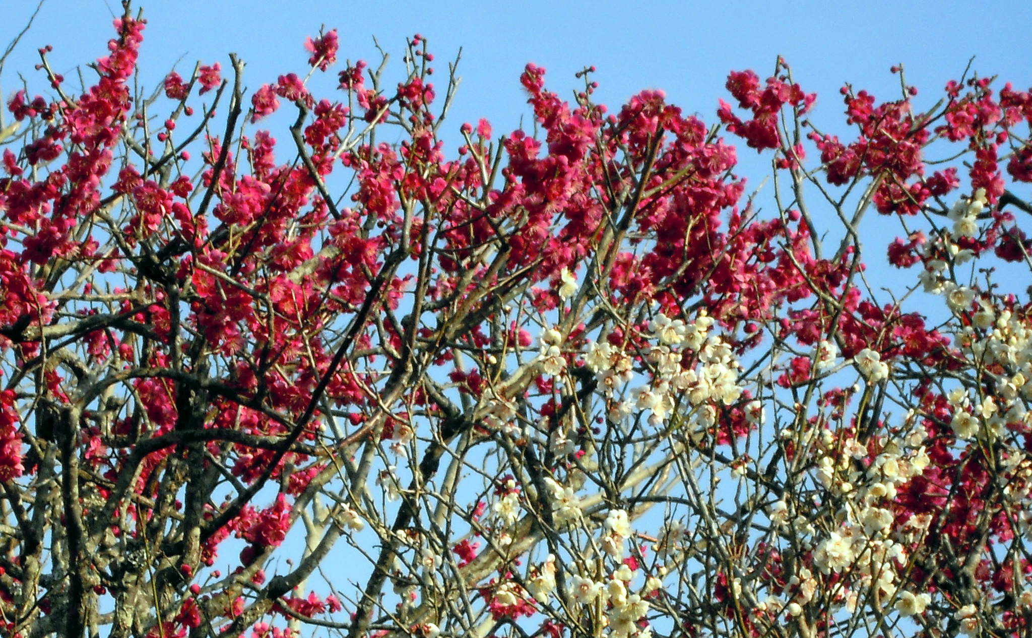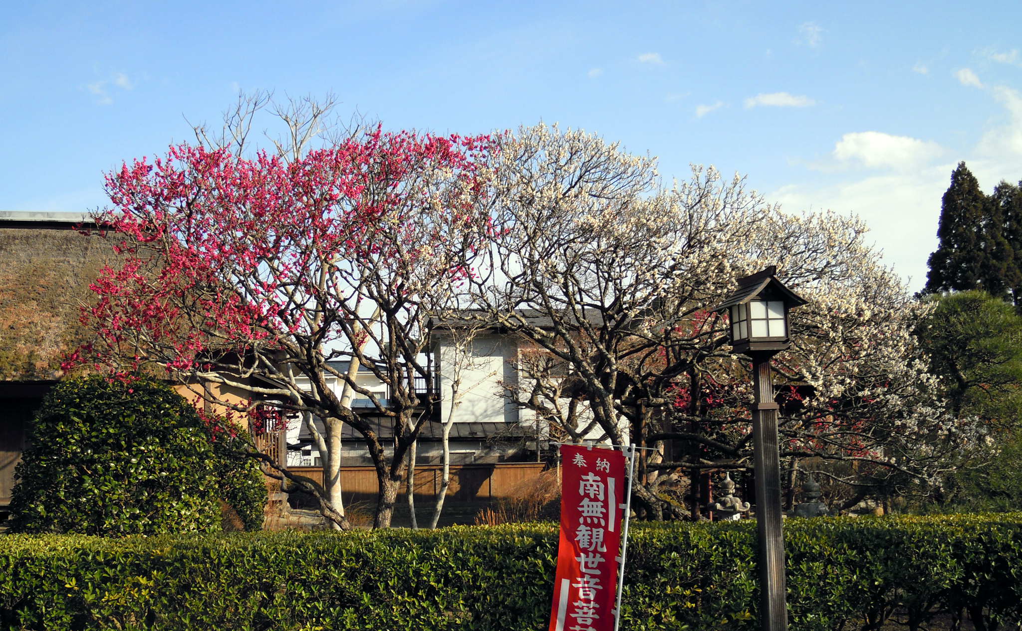 白梅にくらべてだいぶ開花が進んでいます。もうまもなく、見頃となりそうです。