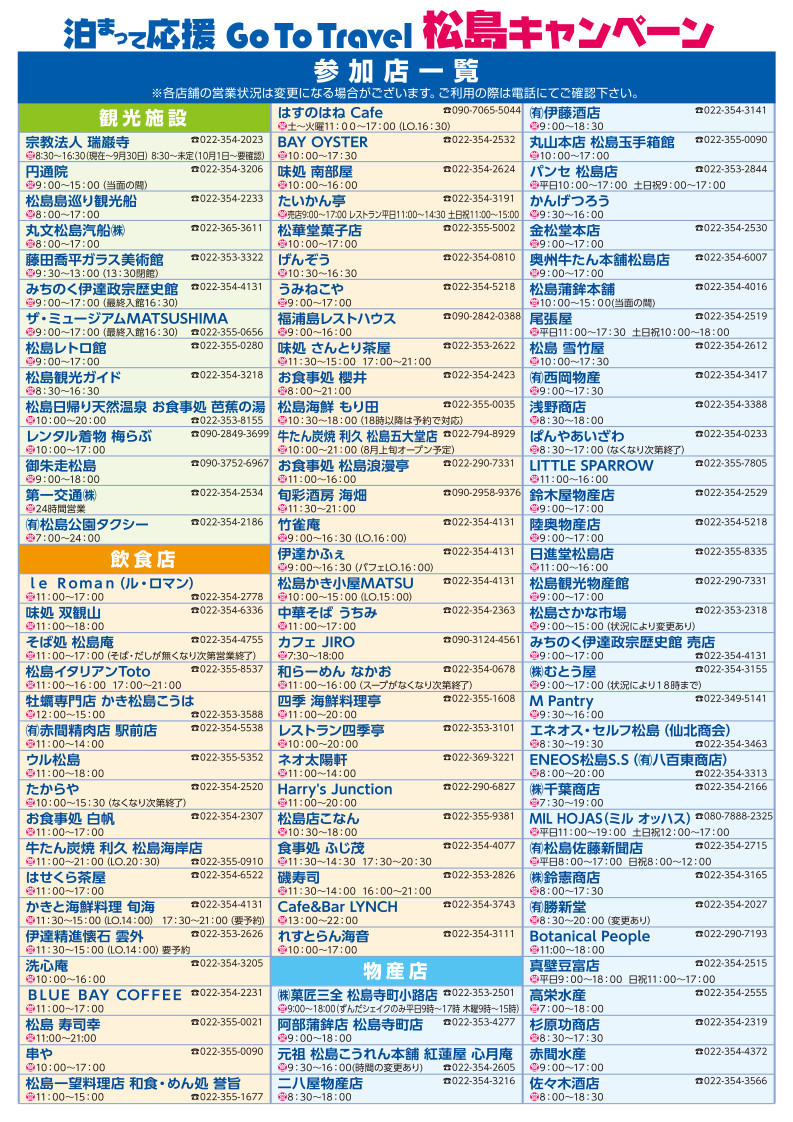 松島町の「Go To トラベル 松島キャンペーン」は、10月4日(日)で終了しました。