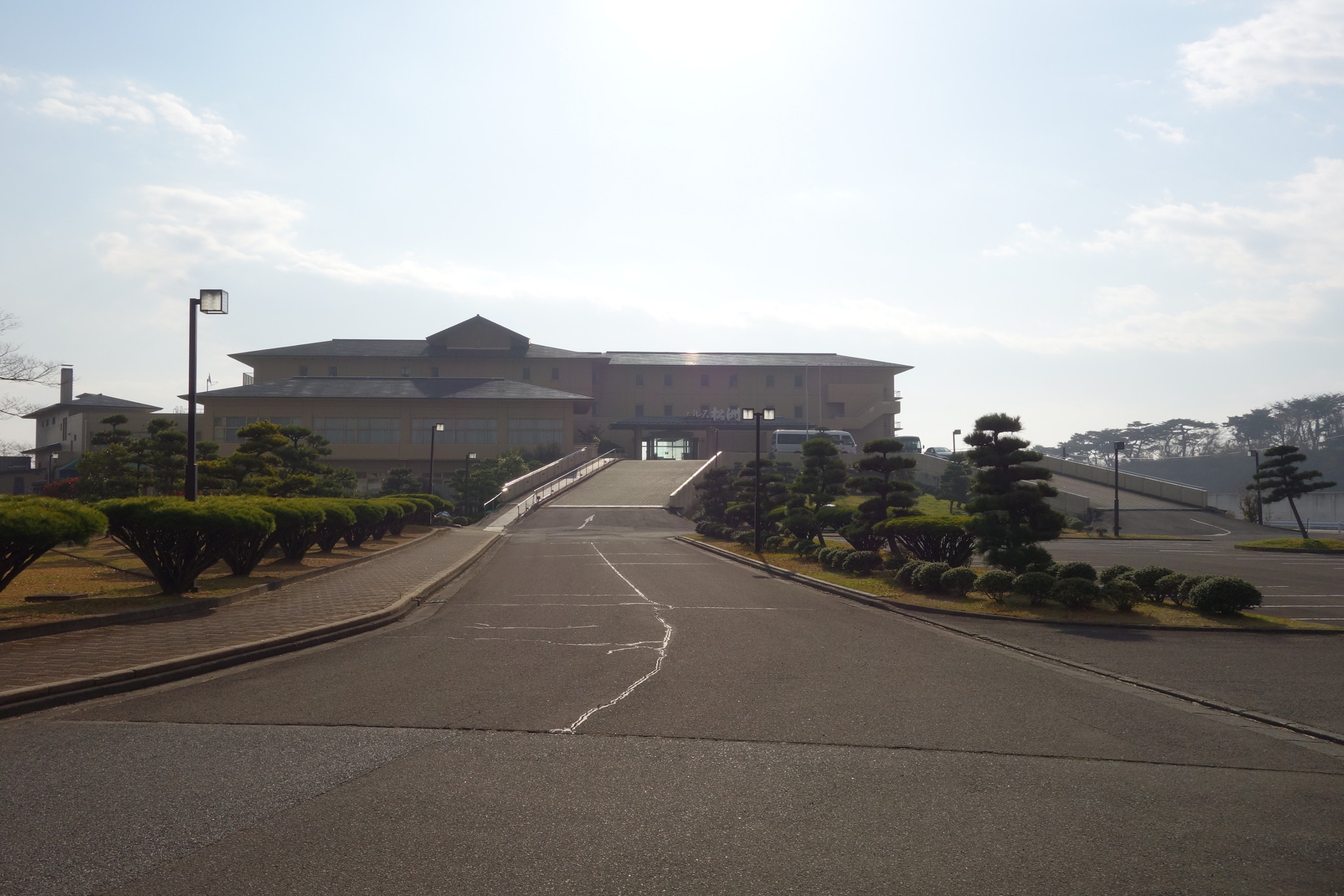 取材先に向かう前に、奥松島パークラインに面した入口側からパレス松洲の建物を撮影してみました。