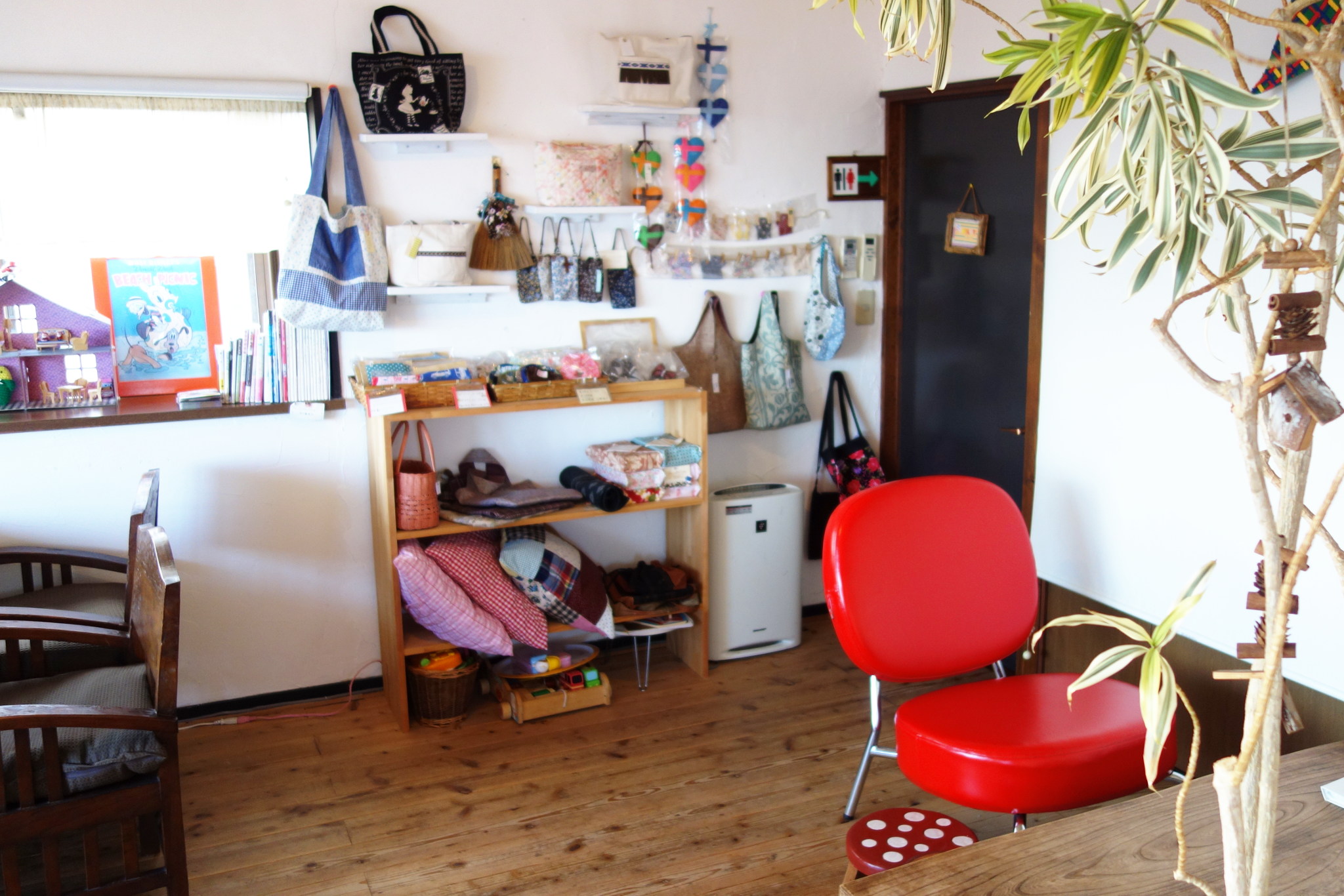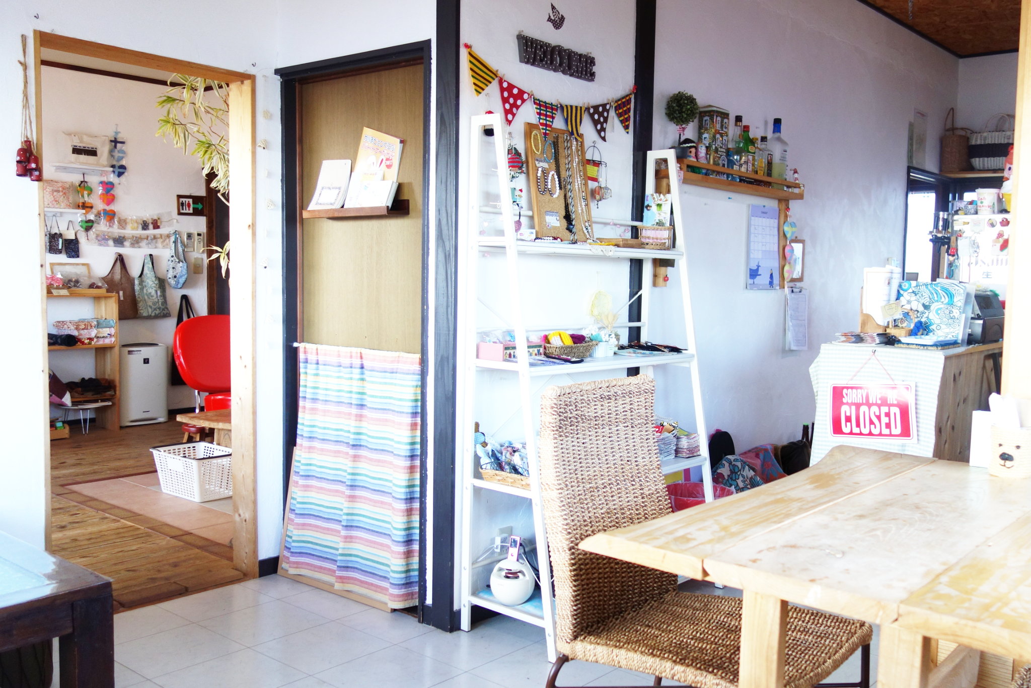 店内ではさまざまな雑貨が販売されています。どれもハンドメイドとのこと。