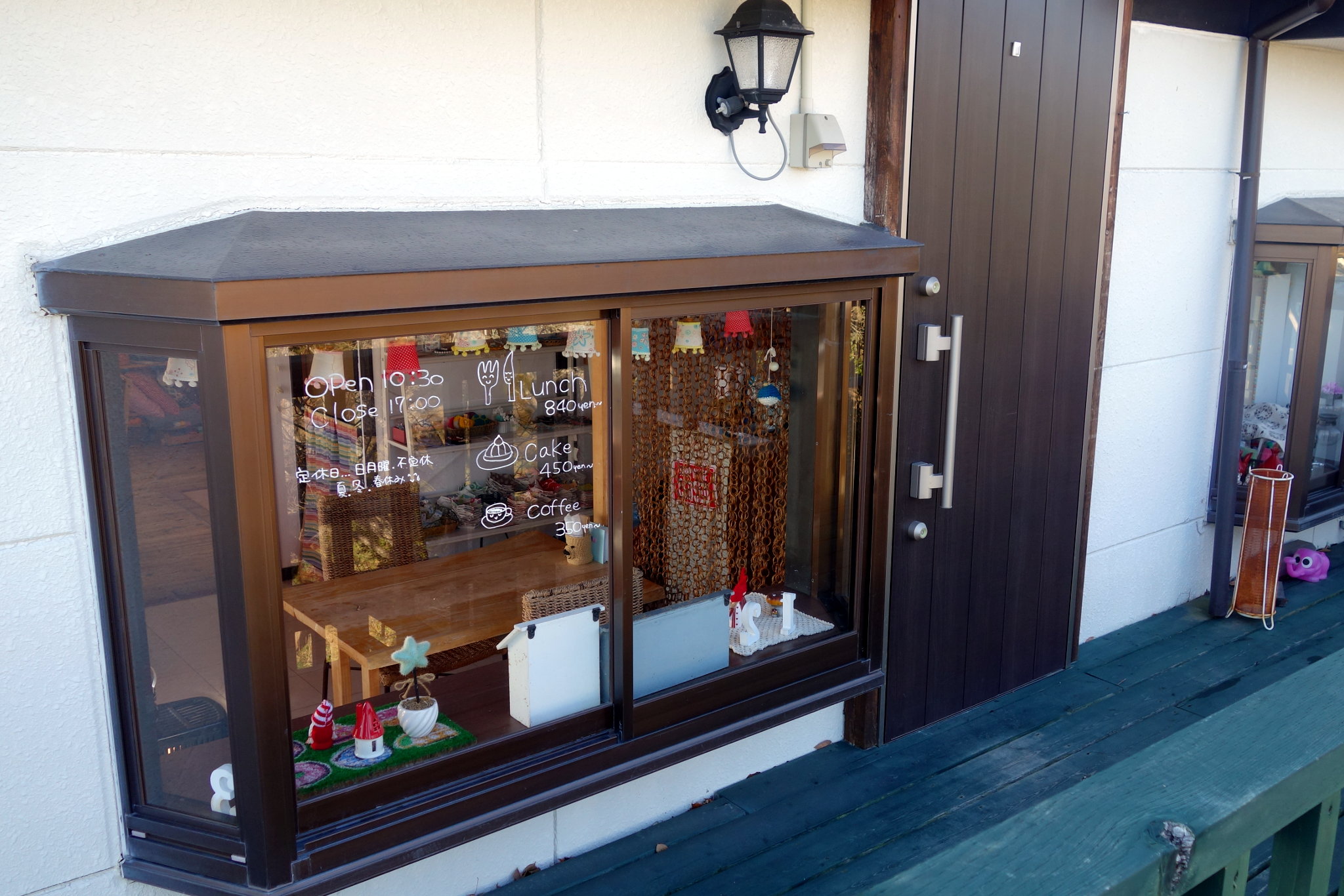 かわいらしくディスプレイされたふたつの出窓のあいだの、木製のドアをくぐって入店します。